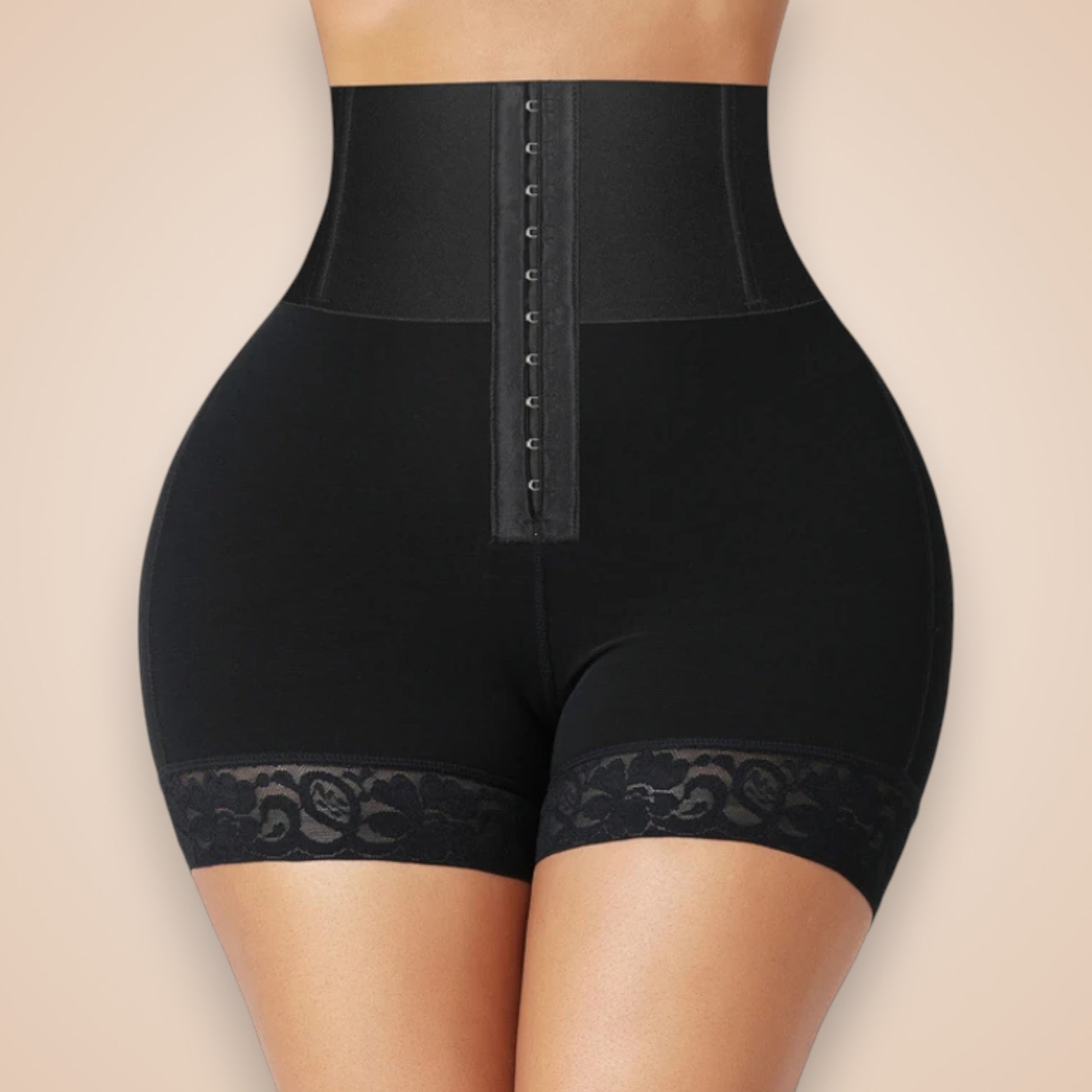 • Design : Taille haute avec agrafes + finition dentelle